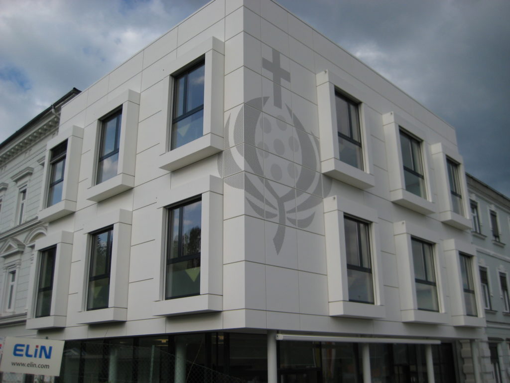 System: Aluminium Kassettenfassade pulverbeschichtet